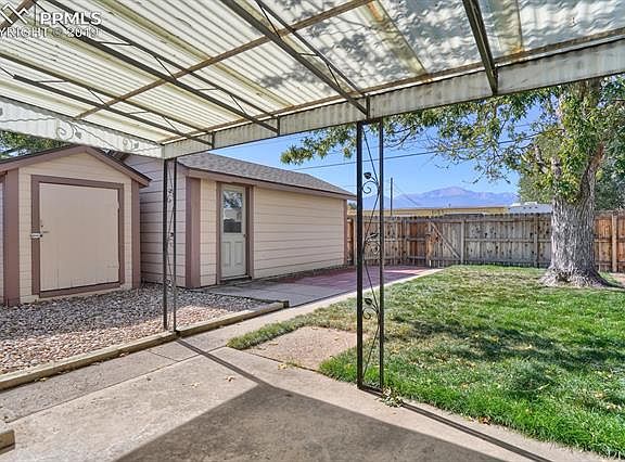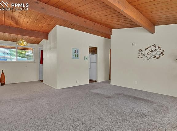 Move-in ready mid-century charmer with almost 1300 square feet of main level living! Approach the home and notice the immaculate xeriscaping at the front of the house which means not only beauty, but little maintenance! Enter the home and you will see gorgeous vaulted wood ceilings throughout along with large windows to allow in plenty of natural light. The spacious living area has plenty of space to enjoy entertaining family and friends. Adjacent to the living room is the kitchen and dining area. The kitchen has wood-type floors, solid countertops, solid wood cabinets and all appliances stay! 3 nice sized bedrooms and a full bathroom are on one side of the house while a bonus room with built-ins, an office/flex space and laundry area are on the other! A walk-out off the kitchen leads to the fully-fenced and landscaped backyard with a concrete patio where you can enjoy the stunning Colorado mountain views! Also out back is a storage shed and a detached one-car garage! Original wood flooring under the carpet making it an easy project if you would like no carpeting! This home has a newer roof and water heater and a swamp cooler that keeps it cool during the warmer months. Centrally located and close to shopping, restaurants, I-25 and UCCS this home won't last long -- come and take a look today!