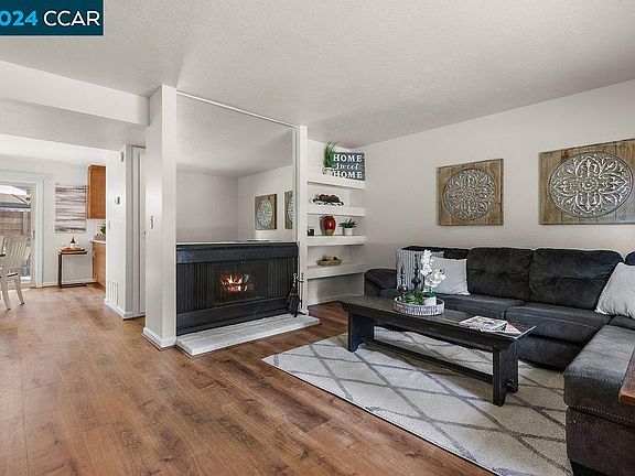 Welcome home to this beautifully updated end-unit townhome in the desirable Northwood community. Facing a large greenbelt, this home has been freshly painted throughout and is complete with new modern light fixtures and newly installed luxury vinyl plank flooring in the living room, dining area and kitchen. The kitchen has stunning modern cabinetry and white appliances. Storage is not an issue here as there is a pantry closet off the dining area and a large coat closet with extra space under the stairs. On the second floor, the spacious primary bedroom has a greenbelt view, two closets and a ceiling fan. The secondary bedrooms both have ceiling fans. Convenient upstairs laundry with storage shelves. Other amenities include nicely updated bathrooms, dual pane windows and a gas burning fireplace; Spacious private patio with adjacent storage closet and two assigned parking places (one that’s covered). Ideally located with easy access to the freeway, minutes to BART and downtown Concord entertainment. Community pools and tennis court. Wow! Don’t miss this one.