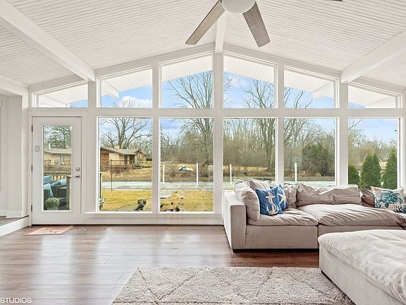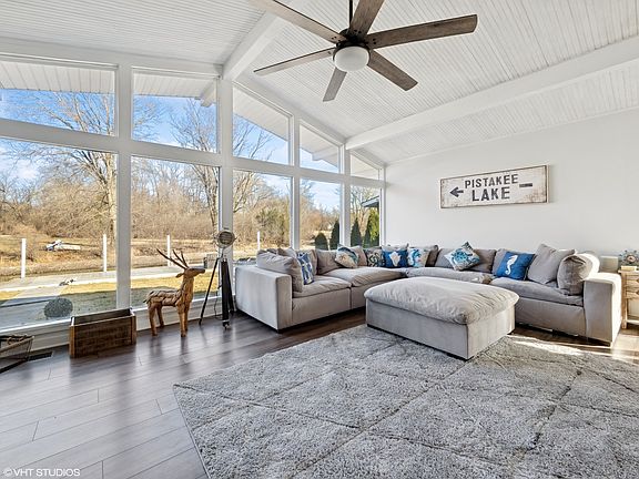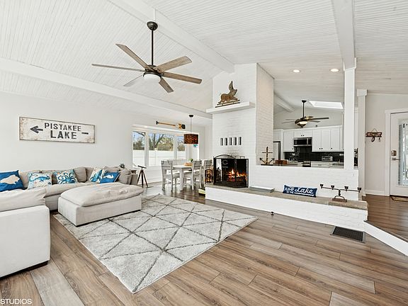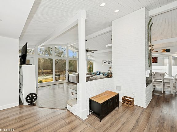 Are you looking for a gorgeous waterfront property to spend your summer in? Look no further, this turnkey vacation home has it all in the desired Dutch Creek Woodlands. 80 feet of waterfront with a boat lift along a secluded channel that is just a short ride to the Fox River and the Chain O' Lakes. The home is completely updated featuring a Great room with vaulted ceilings, oversized windows, and exposed beams. The wood burning fireplace in the Great room creates a cozy and welcoming place to relax. The home is perfect for entertaining a large family. Floors throughout ground level are waterproof. The kitchen features views of the water, white cabinets, quartz counter tops, upgraded Samsung stainless steel appliances, island, and a fireplace. Property has a bedroom on the main level that walks out to a wood deck and overlooks the water. Primary bedroom with Private Balcony over looking the water, sitting loft/study, his and hers closets, and a large master bath. The Fourth bedroom is a second suite with it's own bathroom. The home has interior and exterior Bluetooth speakers. The backyard is perfect for entertaining or relaxing in the brand new hot tub after a day of skiing at Wilmot, which is only 15 minutes away! The heated garage is over sized with a 17 ft door and less than a year old shed are perfect for all of your toys. Plenty of storage including a fenced area for your boat in the winter. New Roof and HVAC both 1.5 years old. Don't let your dream summer home slip away!