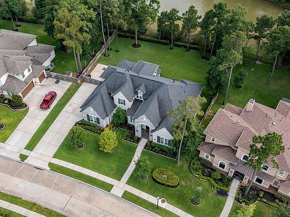 Sophisticated design in this Custom 5 Bdrm by Partners in Building boasting arguably the most beautiful lot in the award-winning community of the Falls at Imperial Oaks! Resting on nearly a half-acre in a Gated enclave of estate homes, this beauty enjoys water and wooded views with ultimate Privacy. The stucco and stone curb appeal wows with double iron doors and meticulously maintained landscape. A 2-story foyer and cascading curved stair welcome you into the open family room/kitchen concept with an impressive floor to ceiling stone fireplace, Restoration Hardware Fixtures, Built-ins with floating shelves, and triple beam ceiling detail. The kitchen offers Quartz countertops, extended height cabinetry, double ovens, gas 6-burner apron cook-top, and a huge walk-in pantry. The downstairs also offers a media room, half-bath, guest bedroom with en suite bath and a spacious master bedroom. Upstairs features 3 generously sized secondary bedrooms and this home has abundant storage.