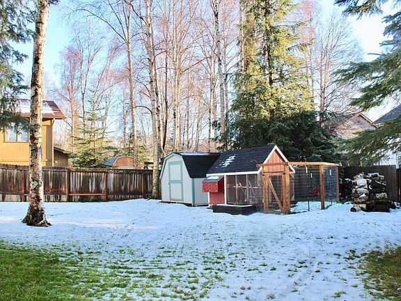 Beautifully maintained and recently updated 5-6 bedroom South Anchorage home in Turnagain View Estates. Level landscaped lot on a cul-de-sac. Fenced yard w/southern sun, mature trees, greenhouse, shed and an unoccupied chicken coop/flexible pet space. New Trex deck & an extra long RV parking pad! Fresh professional paint inside/out, high efficiency boiler, 4*+ energy rating and top rated schools!