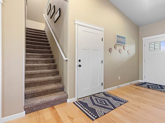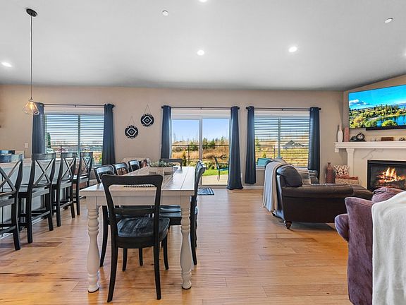 Beautiful newer home in the Trumpeter Estates neighborhood. Gorgeous finishes throughout entire home w/premium tasteful upgrades & extra large island in kitchen. This home features engineered hickory floors, a sprinkler/fire suppression system, w/tall ceilings & large windows really accenting the open spacious feel. The half upper story holds another bedroom along w/rec room space. Step out onto the expansive covered patio w/a hot tub connection, & enjoy the views. This home is one of the very few that does not look into the backyard of another home, but instead is backed up to an expansion pond giving the feeling of distance & privacy. Ample storage & space in the 3 car garage leaves room for cars, hobbies, & more.
