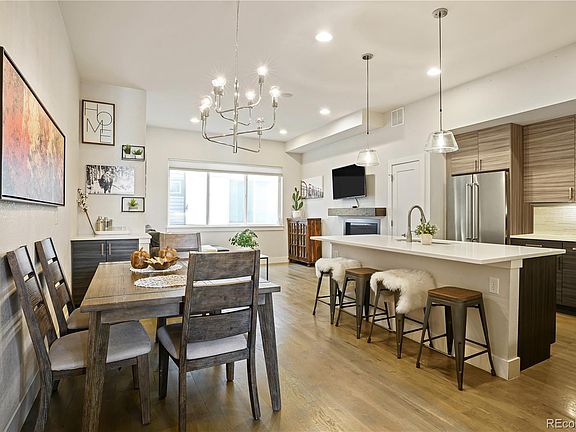 A vision of sleek sophistication unfurls in this Sloan’s Lake residence. Enter into an open and airy layout showcasing ten-foot ceilings and a serene, neutral color palette. Poised beneath a contemporary light fixture, a dining area flows into a spacious kitchen flaunting a vast center island, high-end appliances, large walk-in pantry and abundant cabinetry. Enjoy relaxing and entertaining in an inviting living area illuminated in natural light from a wide picture window. A modern fireplace w/ a mantel shelf provides generous warmth. Four sizable bedrooms — two featuring outdoor balconies — are complemented by three bathrooms w/ modern tiles and fixtures. Concealed in a closet, a stackable washer and dryer set is an added convenience. Revel in the coveted Colorado climate on an expansive rooftop patio boasting stunning mountain and Empower Field at Mile High stadium views. Ample storage for outdoor recreation equipment is discovered in a three-car garage — a rare amenity for this area.