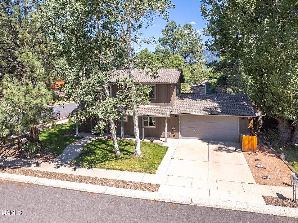Meticulously updated home including a brand new roof in the heart of Cheshire! Less than 5 miles from both Snowbowl Basecamp, and Downtown Flagstaff! The main floor of the home is highlighted by a tastefully updated kitchen featuring soft-close dovetail cabinets, and granite countertops. The second level is comprised of a large primary ensuite with coordinating granite, tile, and cabinets. Which is all showcased by the large south facing windows. Additionally you will find an updated guest bathroom, and two guest bedrooms. One has a sliding glass door which leads to the oversized tiered rear deck with San Francisco Peak views. The fenced outdoor space is the epitome of low maintenance. Landscaped with ''Blue Grama'' grass, and irrigation system.