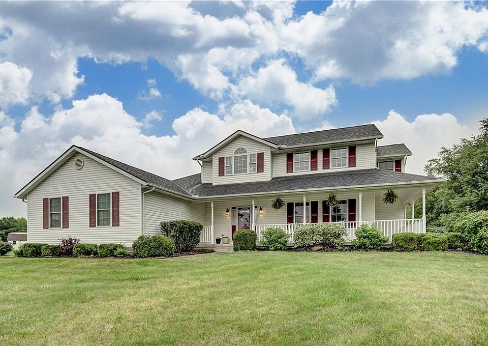 Awesome 2 story custom built home by Tim Studebaker in desirable Windy Ridge subdivision. Master suite, laundry & 1/2 bath on 1st floor; Great room w/gas fireplace; solid oak floors in kitchen, hall & entry; solid 6 panel hardwood doors; ceramic floors in rear hall & laundry; upstairs study could be used as a bedroom - walk in closet across the hall; finished basement w/rec room & storage; complete tear off roof 2014; furnace, AC, sump pump, water softener all newer; new lighting & freshly sealed blacktop driveway; wrap around front porch; paver stone walk to large deck overlooking big back yard. Attached 2 car garage w/opener, workroom & storage area. Move in ready. Schedule a showing today.