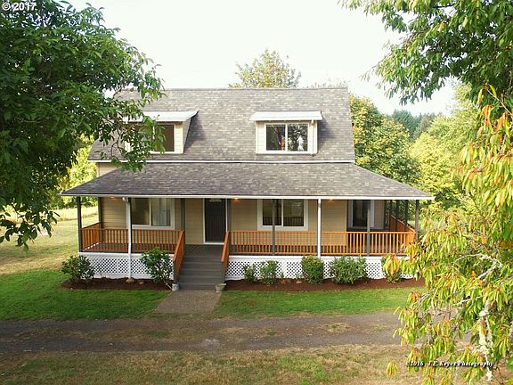 Original farmhouse fully updated. Wrap around porch! Coveted Scappoose schools. Beautiful peaceful private setting w/views. Circle driveway large shop. Open field+trees & creek. Fruit & nut trees garden wildlife deer, elk etc. New cosmetics,Tasteful interior w granite, wood floors, tile, Gas Appliances etc. EZ commute to Portland or hi-tech. Updates inc. foundation plumbing wiring windows roof septic etc.