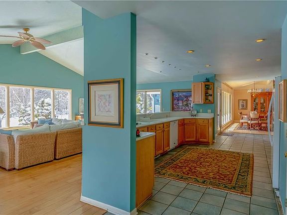 Enjoy the convenience of one floor living in this 3 bedroom ranch situated on a private wooded lot. Open floor plan boasts great room with vaulted ceilings, updated kitchen with maple cabinets, beamed vaulted living room with a fireplace and hardwood floors throughout. A master suite addition features fireplace and sitting room with 600 sq ft. The finished lower level offers a Media room. The park-like backyard has a great stone patio for entertaining as well as a putting green for the avid golfer. Conveniently located to shopping, restaurants, and highways.