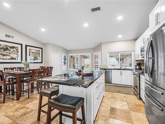 Fantastic Buy! Fantastic Floorplan! Single story! 4 Bedrooms! Full Great Room! Open from front door to rear door! Remodeled kitchen 2022 with new cabinets and pull outs! Beautiful granite counter tops! Stainless steel appliances fixtures! Tile backsplash, Pantry! Pass thru window and counter to rear yard! Plantation shutters! Ample recessed lighting! So many recent updates! Interior painted 12 months with replaced vents 2 yrs, exterior painted 2024, Tile roof restacked 2024, garage door replaced 1 year. Extended driveway parking! Oversized garage! Rear yard features covered vinyl patio, extensive hard scape in rear yard. This home feels fresh, current, on trend, and will not last!