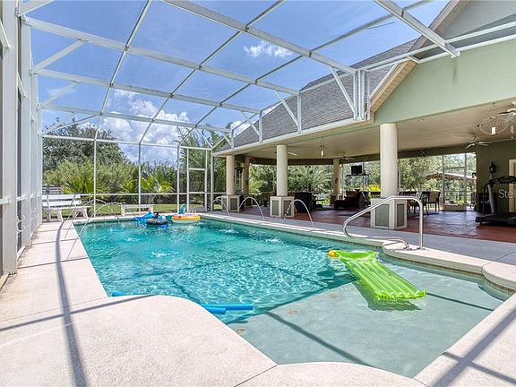 A TOTAL OF 1.01 ACRES!! Beautiful UPGRADED home offers 3 BEDROOMS + 2 BONUS SPACES UPSTAIRS totaling over 3,900 SQFT of interior living space. Beautiful mahogany flooring throughout your downstairs with tile floors in bathroom and a stunning porcelain tile in your main foyer. Spacious living room with 30 FOOT SOARING CEILINGS featuring built in entertainment center. Pass through to your renovated CHEFS KITCHEN equipped with granite countertops, stainless steel appliances, built in oven, center island with cooktop & breakfast bar and separate side nook dinette. DOWNSTAIRS MASTER SUITE with built-in king size sleeper bed with EXTRA large walk-in closet and en-suite spa like master bathroom. Master bathroom equipped with dual head shower, Jacuzzi jet tub, separate vanities one with ample counter space with storage! Bedroom 2 & 3 also have matching beautiful mahogany wood flooring, share UPDATED GUEST BATHROOM. Lovely dominant staircase at entry leads to your DESIGNATED MEDIA ROOM and separate bonus room or 4TH LARGE UPSTAIRS BEDROOM overlooking your sparkling screened pool. EXPANSIVE large screened patio with beautiful swimming pool for Florida lovers, has sun-beach shelf for play and a MASSIVE SEPARATE OUTDOOR LIVING SPACE covered & screened. This outdoor entertaining space is for those who love guests and enjoy being outdoors!! UPDATES to the property include: Windows are DOUBLE PANE, added form & blown insulation in the attic & MORE!! 2-car carport and 2-car garage for maximum parking with separate covered parking for YOUR RV OR BOAT! NO HOA! ONLY 10 MINUTES AWAY FROM ST JOHNS MARINA. Property is ready for new owners! Call today to schedule your private or virtual showing TODAY!