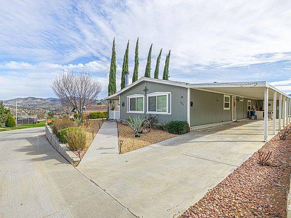 Welcome to Stallion Meadows Community. This beautiful 3-bedroom, 2-bathroom Home with spectacular view of surrounding mountains!! Modern comforts and convenient amenities. Enjoy the benefits of a low HOA fee, while your vehicles are protected under a convenient 2-car carport. Additional community parking ensures your guests are well-accommodated. Two spacious storage shed provides ample room to keep your belongings organized. Dry walled interior thru out home. New Engery efficient windows installed in 2014,New roof 2018,New Ac Unit 2016 Heater updated in 2020. New waterheater installed in 2017.Step inside to discover updated flooring throughout, enhancing the seamless flow between rooms. The heart of the home is Large fireplace , the kitchen, boasts updated countertops and . The master bathroom features a step-in shower for ease of use. Both bathrooms have been thoughtfully upgraded with . The ambiance is serene and inviting. Enjoy easy freeway access, allowing you to seamlessly connect with nearby cities. Schools and shopping are conveniently close, making daily errands and educational pursuits a breeze. Community living is elevated with a pool, clubhouse, and sports courts for your enjoyment. Nature enthusiasts will appreciate nearby hiking trails. Recent improvements include a new roof and hot water heater, Washer ,Dryer and Refrigerator to remain with sale . Updated plumbing ensures convenience in daily living. Stallion Meadow Park embodies modern living with community charm. Don't miss this opportunity. Schedule a private tour to experience all that this remarkable property offers.