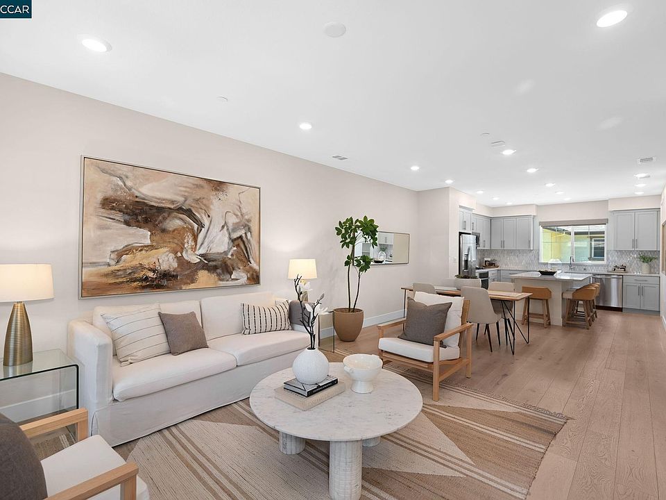 Feels Like a Model Home! Step into this beautifully maintained, like-new condo in the highly sought-after Preserve Community of San Ramon. Designed with comfort and style in mind, the open-concept layout features a gourmet kitchen w/walk-in pantry, spacious dining area, and a light-filled family room—perfect for entertaining or relaxing in style. Enjoy the natural brightness of this east-facing home, enhanced by large windows and sleek recessed LED lighting. The entry-level en-suite bedroom with full bath is ideal for guests, in-laws, or a private home office. Plus, this is one of the few homes in the community that boasts an expanded common area in front—giving you extra privacy and room to breathe. Modern upgrades include 240V wiring for your EV charger and solar-ready setup. Live like you're on a permanent vacation with resort-style amenities: a gorgeous clubhouse, sparkling swimming pool, BBQ area, and playground. Also enjoy 3 parklets & 1 large community park. HOA takes care of exterior maintenance and insurance, making life that much easier. All this in a prime location near top-rated schools, shopping, freeway and Costco. This is the one you've been waiting for—don't miss it! OH Sat & Sun 1-4