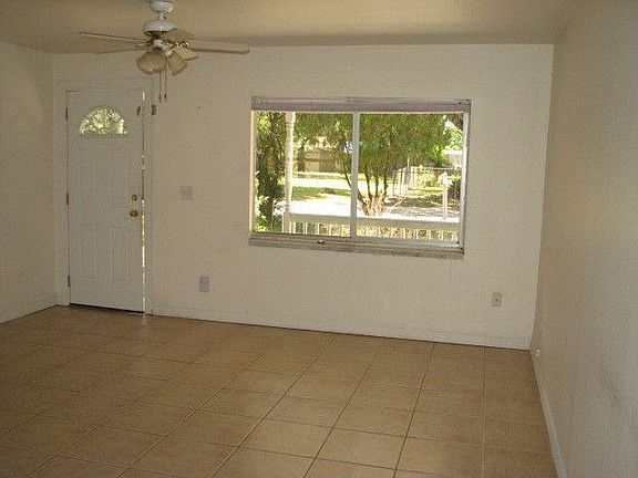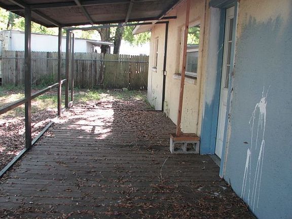 Exterior Features: Blue & white single story home is sitting on fairly large lot, yard needs grooming, overall looks in good condition. Siding: Exterior wall is made of stucco, appears healthy and free of any damage. Windows: Intact. Soffits and Eaves: Intact. SF: (Lot) 14766. SF: (Home) 794. Patio/Porch: Small porch in front & rear of home. Roof: Metal, appears to be in good shape, no major visible issues. Driveway: Concrete/gravel. Interior Features: Overall looks to be in good condition, house is clean and only has very minor blemishes on walls, bathroom is missing toilet but rest of home looks in great shape. Living Room: White walls & trim, tile floor, ceiling fan, room looks nice. Dining Room: None. Kitchen: Tile floor, cabinets & sink are intact, tile backsplash, is in good condition. Bathroom: White walls, tile floor, sink & tub are intact, looks in good condition. Bedroom: (1) Blue walls & trim, beige carpet, closet space, room looks fine (2) White walls & trim, beige carpet, closet space, is in nice shape (3) White walls & trim, beige carpet, also looks in good condition. Basement: None. Mechanics: Hot water tank. Garage: None.
