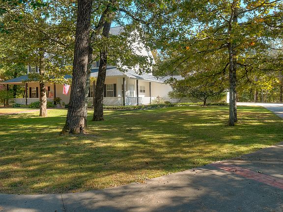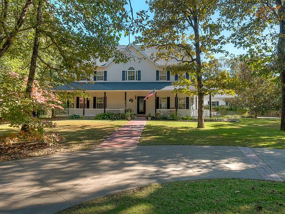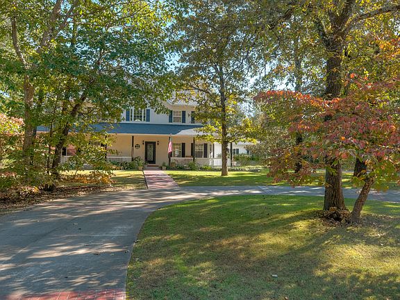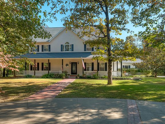 Picturesque and sitting on nearly 4 acres. A large covered front porch offers a welcoming invitation into a comfortable living area to this great home in The Ridges! Brick and hardwood floor grabs your attention in the open and sunny living area. The kitchen comes equipped with ample counter space for meal prep, large island, granite counter tops and an eat-in dining area. A main-level master features a huge master bath with jetted tub and double vanity. Main floor also features a gorgeous sunroom accessible from the living room or master suite. A second level with an interior balcony with space for an office or sitting area. Second master suite in on 2nd level along with 2 additional bedrooms. Large utility room with lots of storage will take you to the oversized garage with 4 overhead