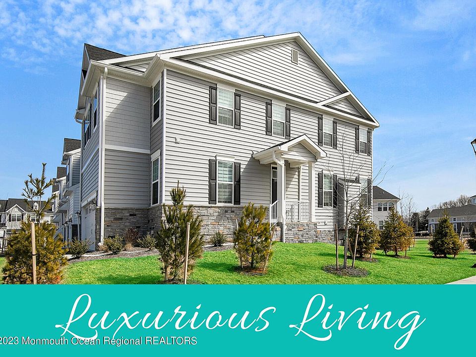LUXURIOUS LIVING at The Jersey Shore! Enjoy desirable END-UNIT - NEWER CONSTRUCTION! Fall in love as you enter this custom designed home offers: 3 - 4 bedrooms, 2.5 Lux. Baths, 2300+ sq. ft of living space, 2 car garage. Finished Lower Level. The SOPHISTICATED OPEN FLOOR PLAN provides a backdrop for fabulous entertaining: 9' ceilings, elegant finishes, beautifully designed kitchen w/ 9' long center island w/ granite leathered counters, sun-lit Dining Area, and inviting Living Room with mesmerizing F/P. Elongated windows throughout to bring in the natural light. Inviting deck for al-fresco dining & outdoor entertaining. Luxurious owner's suite w/ lavish owner's full bath. Expansive Fin. Lower Level for 4th Bedrm/''Man Cave''. Optional FITNESS CTR., pool, DOGGIE PARK. Mins. to Beaches.
