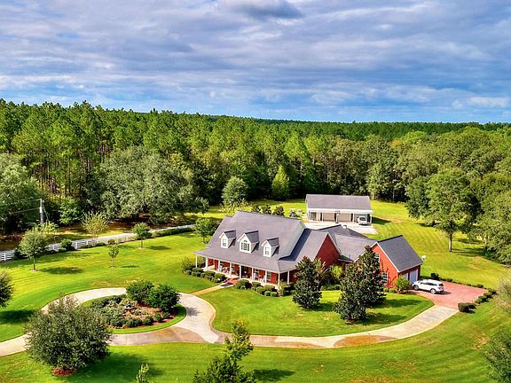 Beautiful Custom Home sitting on almost 80 acres. When you travel down the long drive way...breath taking views of the property and nicely appointed landscaping to this two story home. Exterior includes multiple out buildings that could be used for livestock or farming. The home has large Great room off Formal dining. Well appointed kitchen with island with custom cabinets overlooks breakfast area. Rec room could be used as den. Downstairs has office/ 4th bedroom. Master bedroom with 2 large walk in closets and master bath with tiled shower. Abundance of storage in pantry and laundry room. Full bath in mud room that leads right out back. additional 2 bedroom suites upstairs. Two car attached garage, and 3 car detached workshop/ garage with ac in office area. Patio includes Pergola with