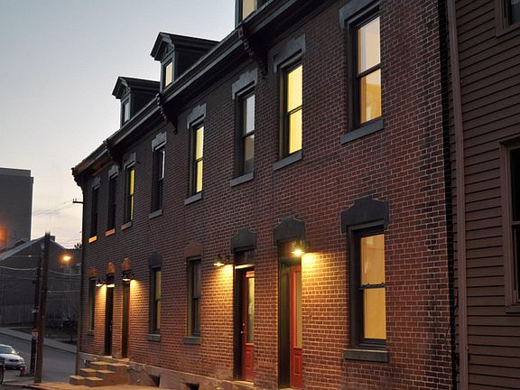 Polish Hill (!) beautifully restored turn-of-the-century townhouses ~ Moments from Lawrencville, Oakland Medical Centers, Children's Hospital, The Strip, and Downtown ~ Open floor plan w/ Paperstone countertops ~ Master suite on top floor with spectacular views ~ all hardwood floors ~ in unit laundry ~ two additional separate den/office spaces ~ walk out basement ~ rear deck with views ~ detached garage ~ enclosed communal garden w/ ornamental grasses and perennials ~ TEXT if interested. Owner pays water and landscaping (other than snow removal) Located close to the Rock Room Bar and a short block fro Kaibur Coffee.
