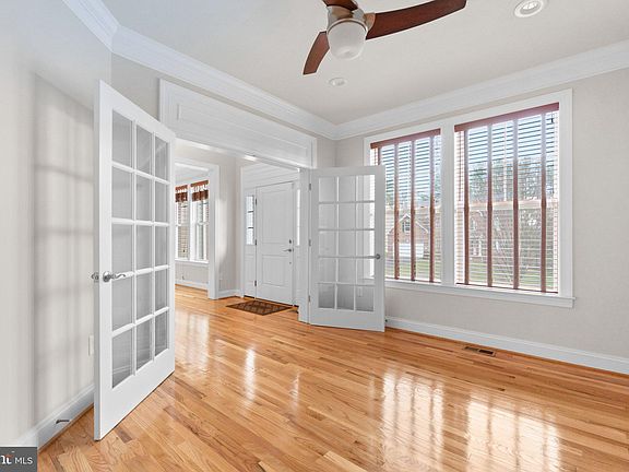 Refined luxury and practical design and fuse together creating a warm inviting home situated on a landscaped .32 acre corner homesite featuring over 5,081 sqft, a stately brick front, stunning floors, large profile crown moldings, a 10’x28’ extension on the main and lower levels, new flooring on the upper floor, and a soaring two-story foyer. Ideal elegance for today’s busy lifestyles is found throughout this home featuring French doors opening to a quiet study, a formal living room with refined crown moldings, and a formal dining room enhanced by crown molding and chair rail trim, followed by a gourmet kitchen. A fully appointed chef’s kitchen hosts stainless steel appliances including a cooktop, classic raised panel cabinetry, granite counters, custom tile backsplash, a center island with breakfast bar, a pantry, and access to the low maintenance deck from a breakfast room perfect for casual dining. Designed for fun and relaxation, the open family room is radiant with a warm glow from the marble surround fireplace, a lighted ceiling fan, and an array of windows allowing cascades of natural light to shine. Owner’s suite presents a double door entry, a walk-in closet, recessed lighting, a lighted ceiling fan, and a garden bath with a double sink vanity, a glass enclosed shower, and a soothing platform soaking tub. Retreat to the lower level highlighted by a spacious rec room, a full bath with a jetted tub, an exercise space, a bonus room, the always needed additional storage, and a walk-up to the flat backyard.