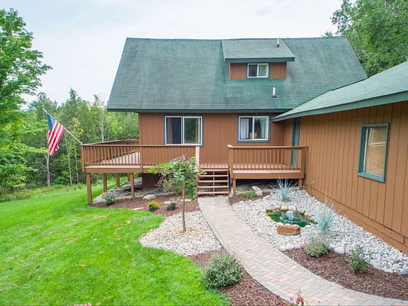 Waiting just for you is this beautiful home on over 8 acres that is surrounded by gorgeous scenery. A peaceful country setting, yet it is only 3 miles from town. This is a 3 bedroom, 2 bath home with bonus room that can be used as a storage room, or office. Have friends and family over for gatherings, and enjoy the wrap around deck as you take in all the surrounding beauty. Or watch the wildlife while having your morning coffee on the deck! Newly updated kitchen with beautiful granite counter tops and Hickory cabinets. Renewal by Anderson Sliding glass doors allow the outdoors in while you have dinner with friends and family. Open floor plan. Large living room with beautiful floor to ceiling stone fireplace which has a pellet stove insert to keep you warm and cozy. Also has newly remodeled upstairs bathroom. The Mossback Creek is running through the property. Enjoy easy access from the house to the Central Trailway where you can enjoy taking a walk or a bike ride, all the while taking in the surrounding beauty.