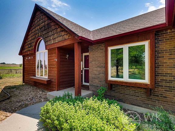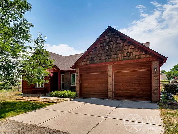 Awesome 4.38-acre country property between Berthoud and Longmont with great views of the mountains. 4 bed, 3 bath ranch-style home with partially finished basement. Property abuts adjoining farm and 4.19-acre private common area along river. Features include quiet rural setting, cul-de-sac, vaulted ceilings, 4-yr old class 4 roof on house and shop, new Pella triple-pane windows, 2-car attached garage plus 1400 sq. ft detached garage/shop/barn with 220. Irrigation water purchased thru HOA.