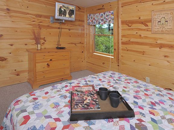 4 bedroom, 4 bath cabin in Eagle Ridge North with a nice view! Excellent location close to the Parkway in Pigeon Forge. Convenient to most all area attractions. Features include an open floor plan, cathedral ceilings, hardwood floors, gas log fireplace, and a large master suite. There are no steps to enter this cabin, and the main level offers 1 bedroom and 1 bath. Comes fully furnished and decorated. Does great on rental. Offered at an excellent price!