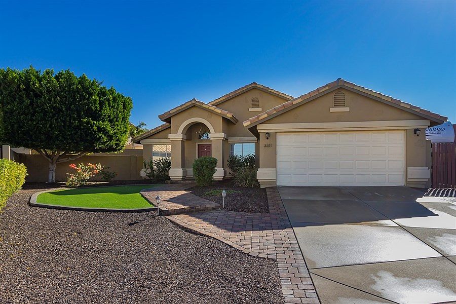 Pride of ownership shows throughout this great family home complete w/4 bedrooms & 2 baths in 1800 SqFt w/formal living/dining room & separate family room. The eat-in kitchen is open to the family room & features beautifully refinished white cabinetry, stainless steel appliances, glass tile backsplash & island w/breakfast bar. Sliding doors lead out from the kitchen to the extended covered patio, additional paver patio & stunning desert/grass landscaped backyard w/wood fireplace perfect for entertaining. The master retreat has double door entry, a private bath w/dual sink vanity, separate tub & shower & walk-in closet. Other features include new roof, 2 car garage w/epoxy flooring, RV gate & parking, oversized cul-de-sac lot & NO HOA fees! Refrigerator, Washer & Dryer included! See today!