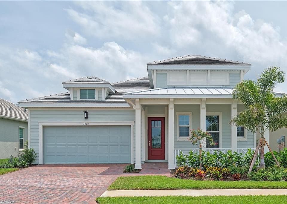 Living is easy in this BRAND NEW single family home. This desired single story Coastal Elevation Banyan model features an open floor plan that encompasses 3 spacious bedrooms, 2-1/2 baths and a flex room. The expansive Gathering room opens up to a spacious screened lanai, oversized yard and plenty of room for a pool. A stylish kitchen with 42 inch Downing Duraform -Stone cabinets, beautiful Baker Street backsplash, stainless steel appliances and Viatera Quartz countertops. Plank tiles in the common areas, and carpet in the flex room. Spacious owner's suite with a walk in closet; tray ceiling; owner's bath with dual sinks, Quartz counters, walk-in shower. Compass Landing is a private and secluded gated community featuring DEEP LOTS from 50ft.-60ft. wide and 130ft.-180ft. long with low association fees! Located in North Naples and minutes to I-75, Mercato, Waterside Shops, Gulf Beaches and zoned with "A" rated Collier County public schools. Residents enjoy a 2,600-sqft amenity center appointed with resort-style pool, clubhouse, tot lot and exercise center. pics for INFORMATIONAL PURPOSES ONLY & may NOT be the home itself. Check remarks for incentives. Home will be ready Nov 2020.