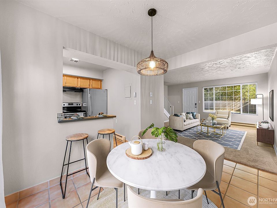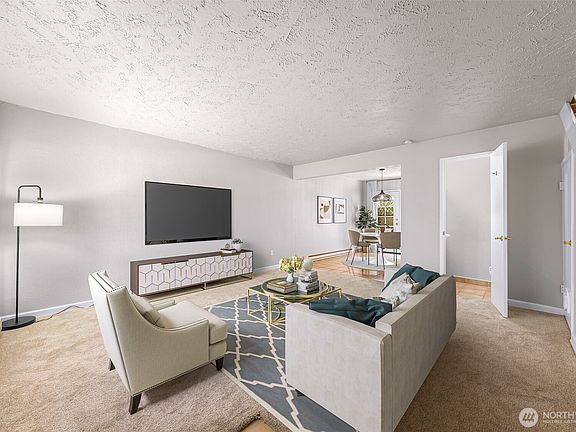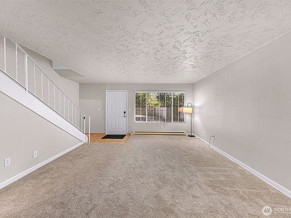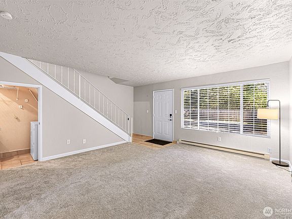 Welcome home to this well maintained 2-story condo end unit set back furthest from the road, with 2 assigned parking spaces. Spacious living area & double French doors lead to a private patio backing up to greenbelt. Kitchen has updated stainless appliances & overlooks patio. Bedrooms are upstairs with a full bath - spacious primary bedroom has 3 closets. Small utility room on main floor with W/D. Close to Alderwood Elementary School, Redwood park, and Locust Beach. No pet restrictions & no rental cap! Low monthly HOA dues cover W/S/G.