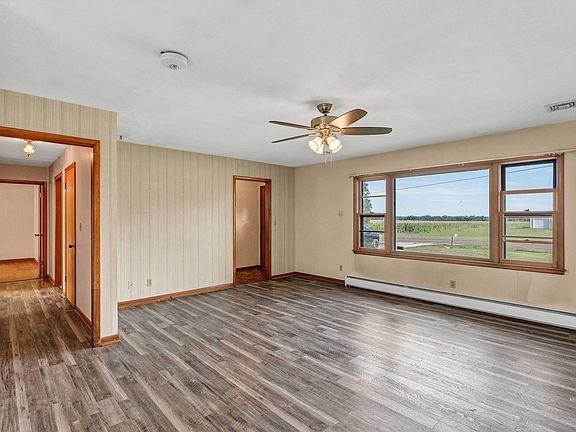 Country Living on blacktop in Berryton! Shawnee Heights Schools with easy access to Topeka & Lawrence! 2 bedroom, 1 bath ranch with room to add a 3rd bedroom on the main level (windows & ventilation present). Large kitchen space with adjacent dining area. Full unfinished basement! Spacious 2 car garage with plenty of storage space. This home awaits your cosmetic updates! Huge yard on nearly an acre is the BEST part of the view! Newer hot water heater, upgraded 200 amp electrical panel, newer flooring in living room & hallway, gutter leaf filters with lifetime warranty & insulated vinyl siding. Welcome home to your slice of out of town paradise!
