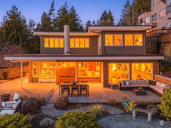 Outside, sea and sky unite in this once in a lifetime property. Watch the world pass by from the wonder of this 4-bed, 2.5-bath mid-century modern home in Three Tree Point, Burien. This home has been in the family since the day of construction. Expertly sited lot overlooking the water. The property offers expansive views of Mt. Rainier, the Olympic range, and Puget Sound from every room. Extra parking, a carport and covered entry beckon you inside, where a timeless stone fireplace, picture windows and French doors to the large view patio await. Upstairs, four bedrooms create a serene atmosphere with water views and spacious rooms. The detached garage and bonus bottom-level workshop provide ample space for generator, storage, work, or play.