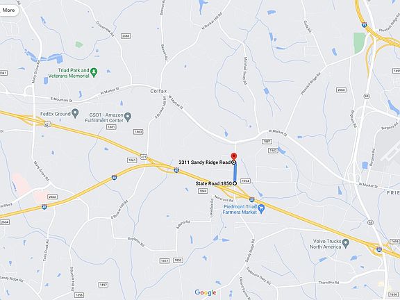 Highlights: Light Industrial space for lease with frontage on Sandy Ridge Road. 162 Feet frontage on Sandy Ridge Road Traffic count 2019: 14000 Vehicle per day on Sandy Ridge Road. Now it will be more. 0.3 Miles from I-40 Exit, less than 10 minute drive from Oakridge, Greensboro, Highpoint & Kernersville. Less than 5 Minute drive from Amazon & Fedex Distribution Center. Property Overview 3 Driveways with 0.96 Acre for plenty of parking space for cars or construction equipment, Flat Land. 1100 Sqft Floor space with 4 rooms to use for office on ground floor and 1 upstairs bonus room for storage or extra office space. On site septic and well water, so no monthly utilities bill. 162 Front on Sandy Ridge Road for to make this great location for business like Used Car dealership, Construction, Electrical, Pluming company, Insurance agent office, Landscaping company etc. Ready to build a new building for any highway or retail business. (Subject to rezoning)