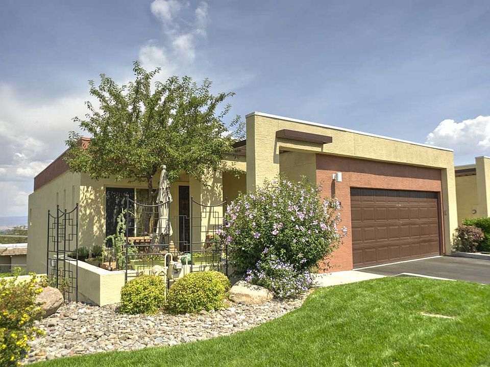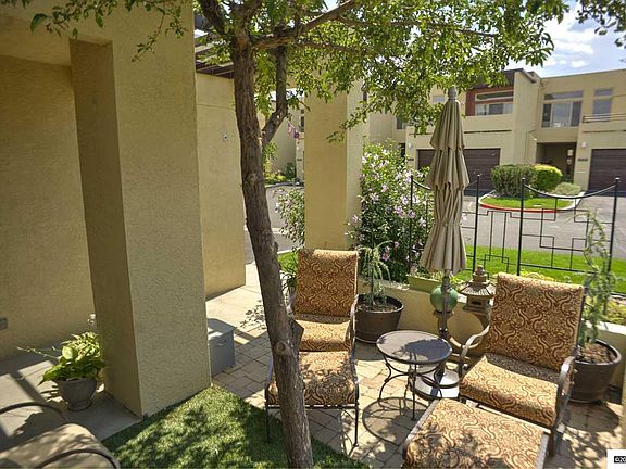 Beautiful Townhome in Skyline Villas. Gorgeous views of downtown. Custom kitchen featuring custom cabinets, granite counter tops & stainless steel appliances. Master bedroom, living room, kitchen & deck on main level. 2 bedrooms, living room & patio on lower level. HOA includes landscaping, 2 pools, tennis courts, 2 clubhouses. Upgrades include: Tile flooring in living room, kitchen, entry, dining room, master bath & second bath. New ceiling fans in bedroom 3 & den. Hardwood floors in lower living room.