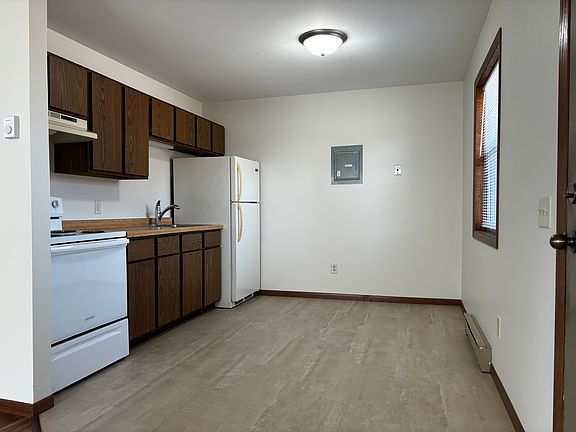 2 Bedroom, 1 bathroom units located on the South side of Eau Claire. Easy access to shopping and interstate 94. Close proximity to Chippewa Valley Technical College. Units have open concept kitchen and living room, with range and refrigerator included. A/C in unit, along with fireplace in the living room. Small storage unit in basement, and coin-op laundry at building. Parking off street in large parking lot. Rent includes garbage, lawn care and snow removal. Lease, security deposit required, NO PETS.