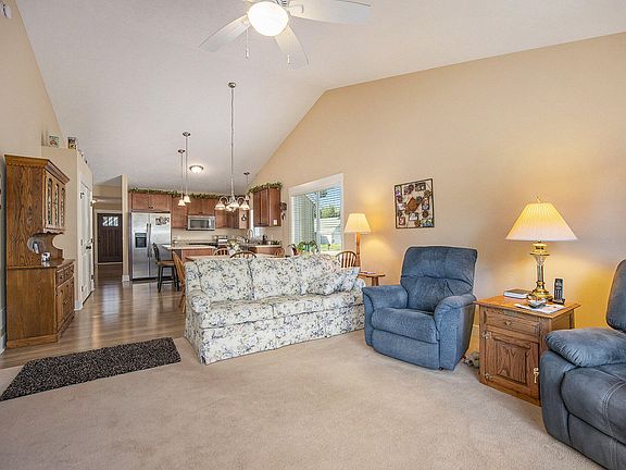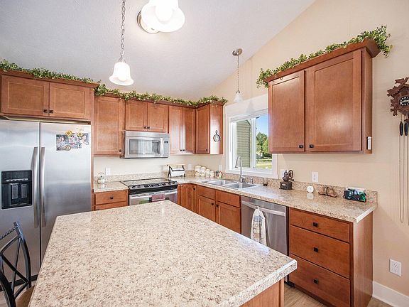 There are 2 spacious bedrooms and 2 full baths on the main level, The kitchen is complete with an island. There is a nice deck off the living room. The lower-level walk out has a full bedroom and a bathroom as well as a large family room and a cement patio in the back. The large garage features hot and cold running water.