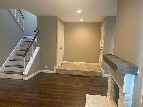 This 2-story property includes an attached garage with 2 car garage parking and central A/C and heat throughout. Enter through the front door to the living room and fire place that has an attached seating area and a cozy dining before entering the kitchen that features abundant cabinet space on one side and a large quartz countertop on the other, with fridge, dishwasher, stove, and over the range microwave.