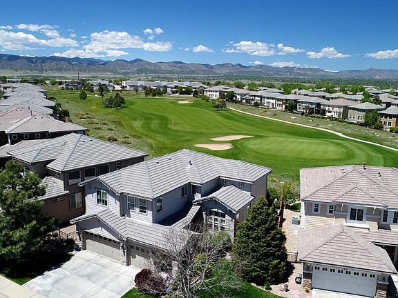 Luxurious 2-story home w/incredible golf course and mountain views in nearly every room! Amazing natural light thruout home. Entry opens into formal living/dining room w/built-in speakers and butler's pantry. Brand new wood floors on main level, new tile in the bathrooms, new paint on both upper and lower floors and Gourmet kitchen equipped w/42" crown molded cabinets, glass tile backsplash, upgraded high end appliances includes dbl oven, 5-burner gas range, island and breakfast nook w/pass thru fireplace in to the 2-story vaulted great room. Master suite offers notable views, plus a luxurious 5pc bath. Peaceful backyard backs to the 16th green on the Highlands Ranch Golf Course. $30,000 upgraded outdoor area includes a pergola covered trex deck, professional landscaping and outdoor kitchen w/gas grill, refrigerator and a Big Green Egg grill. Newer energy efficient A/C & furnace. Buyers to verify square footage & all HOA information. Move-in ready!