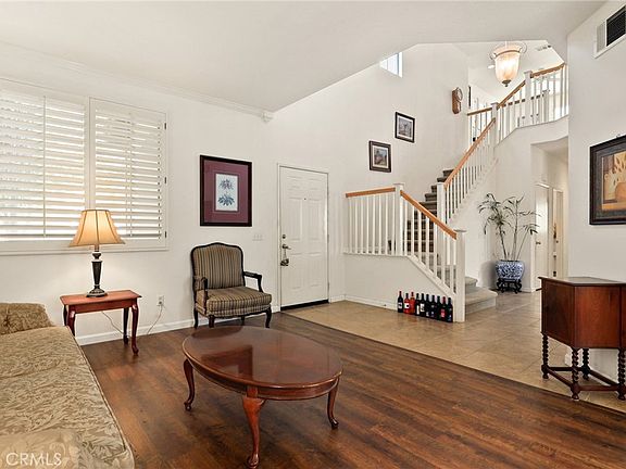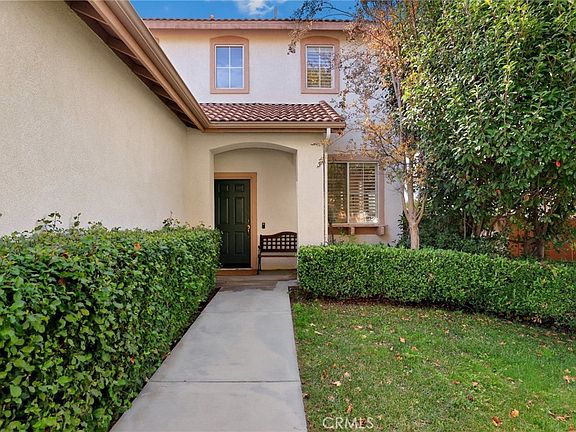 Huge price improvement!! Nestled within a serene setting, this captivating residence exudes elegance and comfort at every turn. Welcomed by mature hedges and a stately front yard tree, this home boasts a distinguished curb appeal. Arrive at the three-car garage and enter inside to discover a grand entrance with soaring ceilings that amplify the sense of space and airiness. The formal living and dining areas offer a sophisticated ambiance, complemented by hard flooring that graces the entirety of the first floor, adorned with charming shutters on the windows. The main floor hosts a convenient powder room and laundry room, catering to modern-day ease. The heart of the home unfolds seamlessly—an open kitchen, dining, and family room, adorned with a brick-framed fireplace and mantle, creating a cozy focal point. The kitchen features ample cabinet space, a center island, and stunning French doors leading to the pergola-covered paver patio, perfect for indoor-outdoor living. In the backyard, be greeted by mature palm trees and a planter border with lush, mature plants, creating a serene backdrop for outdoor gatherings and relaxation. Natural light dances throughout the home, creating an inviting and warm atmosphere. Ascend the stairs to discover a thoughtfully designed layout. A loft area offers versatile space, while two secondary bedrooms share a full bath with a dual sink vanity, catering perfectly to family or guests. The spacious primary suite boasts a walk-in closet and an ensuite bathroom complete with a soaking tub, separate shower, double sink vanity, and a private toilet room—an oasis of luxury and comfort. Conveniently located near schools, shopping centers, dining options, and easily accessible via the 79 and 15 Freeways. This residence offers a harmonious blend of sophistication, comfort, and convenience!