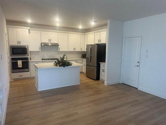 Never Lived in 4 Bedroom with 3 Bedrooms on second level and 1 on first level. Open floor plan with large kitchen sink in island and lots of cabinets and counter space. Oversized pantry. Across street from Green Belt. Covered back patio. Up stairs features 2 full baths, 3 bedrooms. Great floor plan located in new North Sky Community near schools. Includes washer, dryer, and refrigerator.