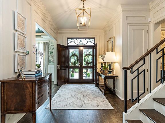 Elegant brick two-story nestled on a well-groomed, .52-acre lot in Bellewood Forest - inviting, light filled double-door entry features a gorgeous staircase with handcrafted metal railings opposite the dining room with stepped-down ceiling and hand-painted de Gournay wallpaper - the family room boasts a limestone mantel bordered by custom cabinets with French doors opening to a magnificent covered porch and access to a cozy den/study with floor-to-ceiling windows and bookcases - a state-of-the-art kitchen adjoins the breakfast nook and butlers pantry and includes quartzite countertops, oversized farm sink, Wolf + Sub Zero appliances and custom pantry - the spa-like MBR retreat features gorgeous double vanity, walk-in shower + dressing room - second floor features 3 bedrooms with ensuite baths plus office or bonus - laundry/mudroom with zero-entry into oversized garage - the generously proportioned spaces are further enhanced by the 10' ceilings, hardwoods up/down, exquisite moldings, built-ins and high-end lighting - a sophisticated residence with clean, classic lines that exudes warmth and intimacy - exceptional!