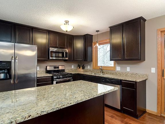 Great 5 bedroom home includes beautifully updated kitchen and bathrooms, fabulous 3 seasons porch attached to the deck and overlooks the large backyard shaded by mature trees. The huge lower level is freshly painted, has an additional 2 bedrooms and 3/4 updated bathroom. The upper level includes 3 bedrooms, a full bath and an open floor plan from the kitchen to the family room, dining room and access to the porch. Located on a dead-end street and close to highway access and shopping.