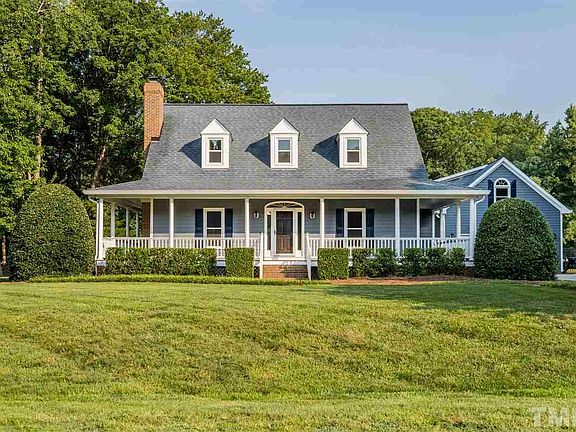 CHARMING Cape Cod style home on just under an acre in Apex! Come appreciate the meticulous updated exterior. Walk into a freshly painted interior, cozy living room w/wood burning fireplace, and wet bar. Floor plan opens up w/vaulted ceiling. Skylights make for a light & bright kitchen and dining room. Master suite on main floor with two bedrooms up connected by jack-n-jill bath. Detached garage w/large bonus room (functioning as home office). Beautifully landscaped, fenced yard, and more... No City Taxes!