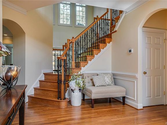 Welcome to this gorgeous home located on a private lot within walking distance of Tarrington's clubhouse! This home has almost 5,400 sqft of finished living space, 5 bedrooms and 4 ½ baths. Outdoor entertainment at its best, including a beautiful outdoor stone patio w/built in grill, pergola-covered dining/sitting area, large gas fire pit, upper terrace w/new trex decking, and 2 additional front porches. Mature landscaping complete w/irrigation and exterior lighting that lights up the whole house! High end gourmet chefs kitchen that includes new backsplash and quartz counters, new 48 inch subzero refrigerator, stainless steel appliances, w/island & dry bar. The foyer features a grand entrance w/large rooms to entertain and relax and your guests will enjoy a large 1st floor guest suite including a full bath. Upstairs you will find 4 additional bedrooms and 3 baths, including an expansive master suite w/a custom dressing room. On the third level is a large rec room and wet bar entertaining area that has a dishwasher, sink, beverage frig & wine frig, and full bath. Neighborhood amenities include a pool, clubhouse, fitness center, playgrounds, sidewalks and river front access and more!