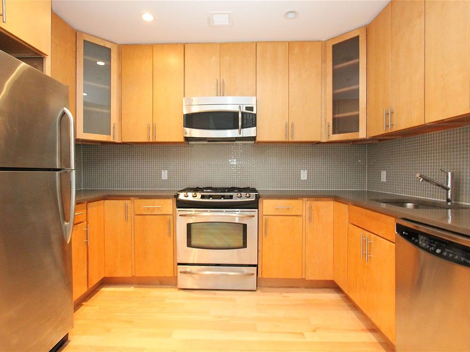 You're viewing one of the largest 2BR/2BTH layout in the full-service-luxury-doorman building, The Thread. Boasting roughly 1200 sf, you enter onto an impressive 28x13' living/dining room with hardwood floors, large windows and a spacious private balcony with unobstructed views. The master bedroom is about 17x11' and it comfortably accommodates up to a king size bed + furniture. It has an en-suite bathroom and lots of closets. I mean, lots of closets! The second bedroom is roughly 13x11' that will fit up to a queen bed + furniture. This unit features stainless steel appliances and washer/dryer in unit. This elegant high-rise building offers 24hr door attendant, concierge, 3 elevators, fitness room, playground, community lounge with pool table and an outside area with BBQ. In addition, it includes a dog-run area (yes, it's pet friendly). Value, Space & Quality here is hard to beat! Schedule a private tour now. $2,395 represents the net rent on a 13 months lease. Parking available for extra charge. Please ask listing agent for details.