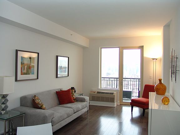 1 Bedroom, 1/1.5 Bath + Den, Condo features a spectacular, direct view of NYC and open floor plan design. Also includes an upscale kitchen with quartz counter tops and stainless steel appliances, designer baths, hardwood floors throughout, ample storage and closets. Amenities include: 24 Hour Doorman, Fitness Center, Community Room, Kids Play Area, Outdoor Community/BBQ area and 1 Car Garage Parking.