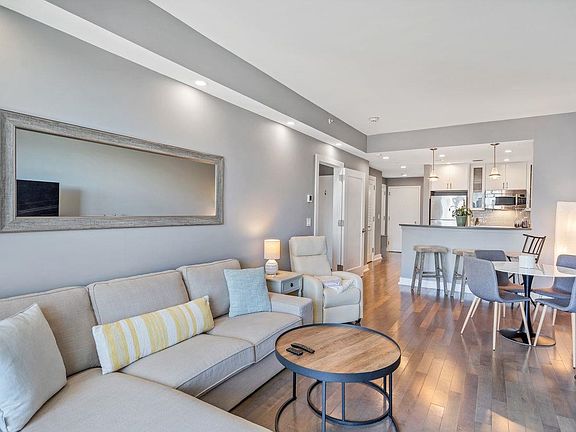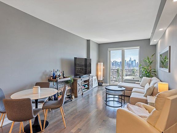 Welcome to The Thread Luxury Condominium! One Bed plus Den. This home has it all, with breathtaking spectacular all-day and all-night views of Manhattan directly from your private balcony, your living room and your bedroom. The features and finishes of this home leave nothing for want… Start your day sipping coffee while watching the sunrise over Manhattan from your private balcony. Retreat to your well appointed kitchen with breakfast bar to mix a smoothie or get dressed in your walk in closet/dressing room. Hit the downstairs gym all before you start your day. The home features a den the size of a bedroom for work-at-home, and a well placed half bath perfect for days of entertaining friends. The building has a friendly 24-hour concierge/doorman to help store your package deliveries as well as a community room, well-equipped gym, 2nd floor deck with grills and outdoor putting green, a children’s playroom and a dog run. Upgrades include a plethora of LED smart recessed lighting, well places sconces, powered window treatments, a garbage disposal, a new quiet heating and air conditioner units. Beautiful front loading LG washer and dryer in the home. The commute to NYC is a dream with the super-quick bus options and the highway entrance within 2-blocks of your home. Come see what you are missing....