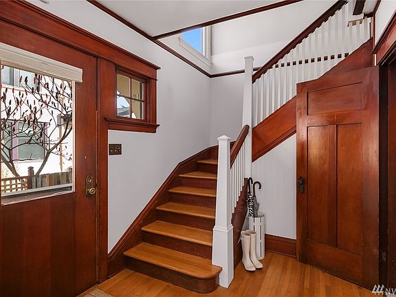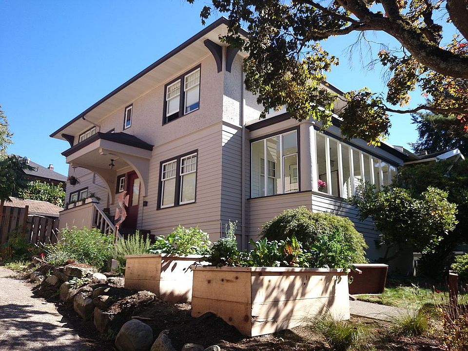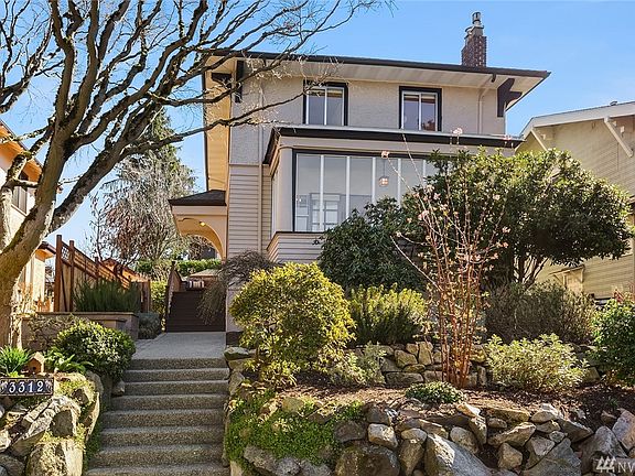 Stately Craftsman built in 1913, overlooks the park-like setting of Hunter Boulevard. Charming original details include pocket doors, lovely moldings, HW floors and DR built-ins. Light-filled main floor with generous rooms including FR/library & west facing sunroom. 3 beds/1bath plus extra finished room on 2nd floor could be office or nursery. Beautifully landscaped front yard with rock retaining wall & raised vegetable beds. Detached 1 car garage and fully fenced level backyard. Very special!