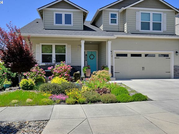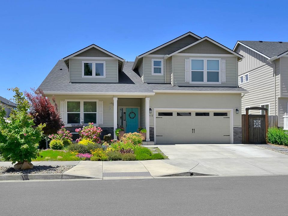 Welcome to this outstanding 2-story craftsman built in 2020, located in the heart of the Rivendell neighborhood of Santa Clara. Pride of ownership shows with meticulous attention to detail and unique landscaping that enhances its curb appeal. The charming front yard greets you, leading to a spacious covered front porch where you can sit, & enjoy the soothing sounds of the custom water feature. Upon entry, you are welcomed by an open floor plan with cohesive LVP flooring throughout. The living area has high ceilings and a cozy gas fireplace, seamlessly flowing into the kitchen and dining area, making it perfect for large gatherings. The cook's kitchen is a dream with an oversized island that comfortably seats four, granite countertops, a gas range, stainless steel appliances, a large walk-in pantry, w/ beautiful cabinetry providing excellent storage options. The dining room features sliding doors that lead out to the covered patio and backyard, facilitating easy indoor/outdoor flow perfect for entertaining. This home offers four large bedrooms, including a primary suite on the main level with a generous walk-in closet and a luxurious bathroom featuring a double sink vanity, walk-in shower, and soaking tub. The main floor also includes a good-sized laundry room with a sink and additional storage options. Relax and enjoy the fully fenced backyard, complete with clean landscaped borders, level green space, and the covered patio. Two additional pergolas provide more shade and are great for additional gathering spaces. The backyard is hookup ready for a hot tub and for a gas grill. A handy tool shed offers extra storage solutions for gardening tools and more. Over sized 2 car garage offers extra work space. The sprinkler/irrigation system makes watering a breeze. This beautiful home offers plenty of room to grow and is perfect for those who appreciate quality craftsmanship and modern conveniences. Call & schedule your private showing today!