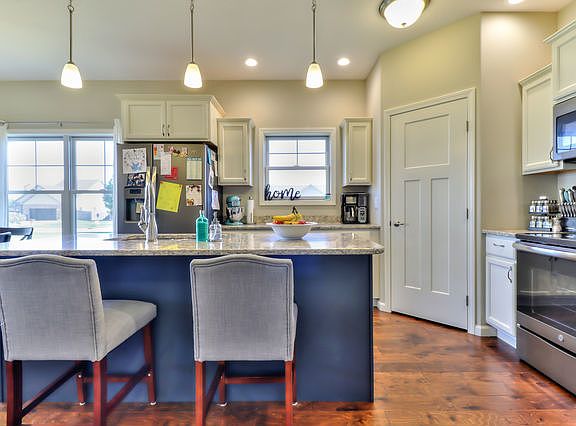 Come view this newly constructed ranch home before the time has passed! This cottage style home has a zero entry with a brick and stone exterior giving the home amazing curb appeal. As you enter the home you are greeted with beautiful details throughout with dark hardwood floors and tall ceilings that opens to a comfortable living room which includes a gas log fireplace with mantel and quality Anderson windows. The gorgeous kitchen provides quartz counter tops, white cabinets, slate appliances, added lighting, and a sunny breakfast nook that brings a lot of natural light into the home with exterior access to a covered back porch complete with wainscoting. This functional home offers two generously sized bedrooms and two full bathrooms with one being the master that features a barn door entrance to the up to date full bath with a step-in tiled shower and double sink. There is an abundant amount of storage and closet space with a functional laundry room, not to mention a full unfinished basement and two-car garage. This home is move in ready! View it today!
