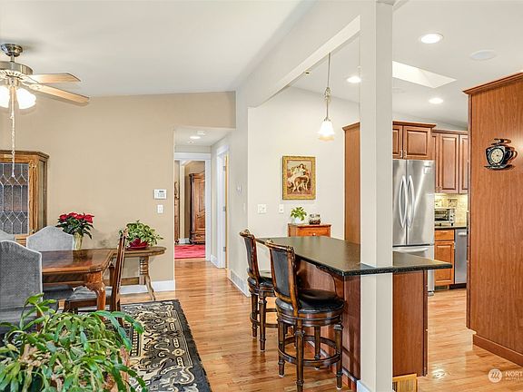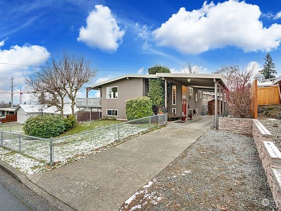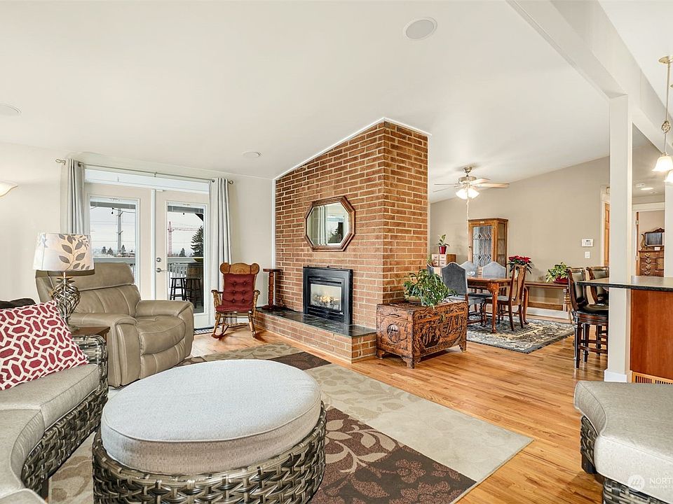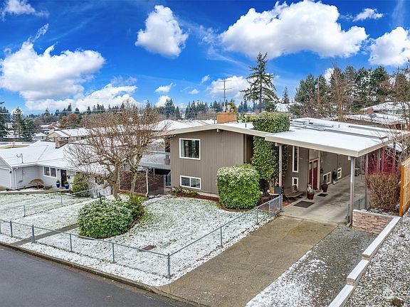 Welcome to Mid-century living at it's finest!, updated & remodeled home. Views of the Olympic mountains.This 2,400 sq ft 4 Bed & 2.5 Baths feature vaulted ceilings complemented by the home's two brick fireplace from floor to ceiling.This updated home showcases main floor updated kitchen w quartz counters, SS applces & Steamer Oven. Open floor plan & both living and dining access to deck. Relax, unwind or entertain on your extensive partial covered deck & your private backyard. Main floor master suite w updated bath opens to the wrap around deck. New roof 2016, plumbing 2011, electric panel 2001. BONUS 2nd Kitchen & possible MIL 2nd laundry, rec room in the walkout daylight basement. RV parking & carport. Close to shopping restaurants/ frwys