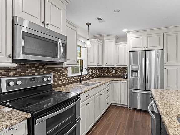 Located in one of the most convenient neighborhooods to schools, hospital and area beaches. Easy living in this brick ranch will have you ready to enjoy life at the coast. Fresh paint, updated kitchen, tile wood flooring in kitchen and dining, add to the beauty of this corner lot home. Kitchen features a island bar and extra prep sink, gas stove, soft close cabinets and pantry. The extra living space at the back of the house is perfect for relaxing and access to the back yard and patio. Jump on this opportunity to be a part of Morehead City.