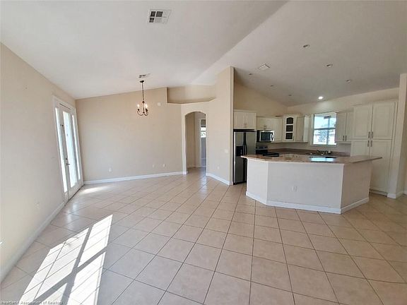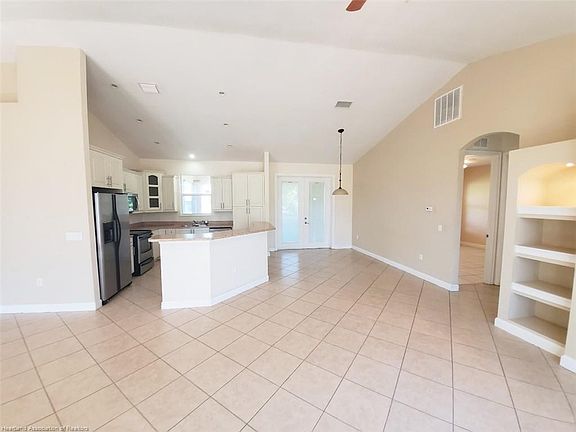 Fantastic opportunity to own a well-built 2006 home in a great location at an unbeatable price! This home has many upgraded features evident from the elegant 8' doors and arched entryways, vaulted ceilings with recessed lighting, arched windows, French doors with integrated blinds, diagonal tilework, and more. This three bedroom, two bath home has an open concept living space with a split layout. The kitchen features nicely accented cabinetry, stainless steel appliances, and a large island with raised bar area. The living room has a built-in entertainment center complete with accent lighting. Dining room has French doors leading out onto a fully enclosed Florida room with lots of windows to enjoy the Florida sun. The master bedroom has an en-suite bathroom with dual vanity, soaking tub with glass block window, and a separate shower. On the opposite side of the house, you'll find two bedrooms and one bathroom with tile surrounding the combination tub/shower and glass block window. With some enhancements, this home will be a true gem. Come tour your new home today!